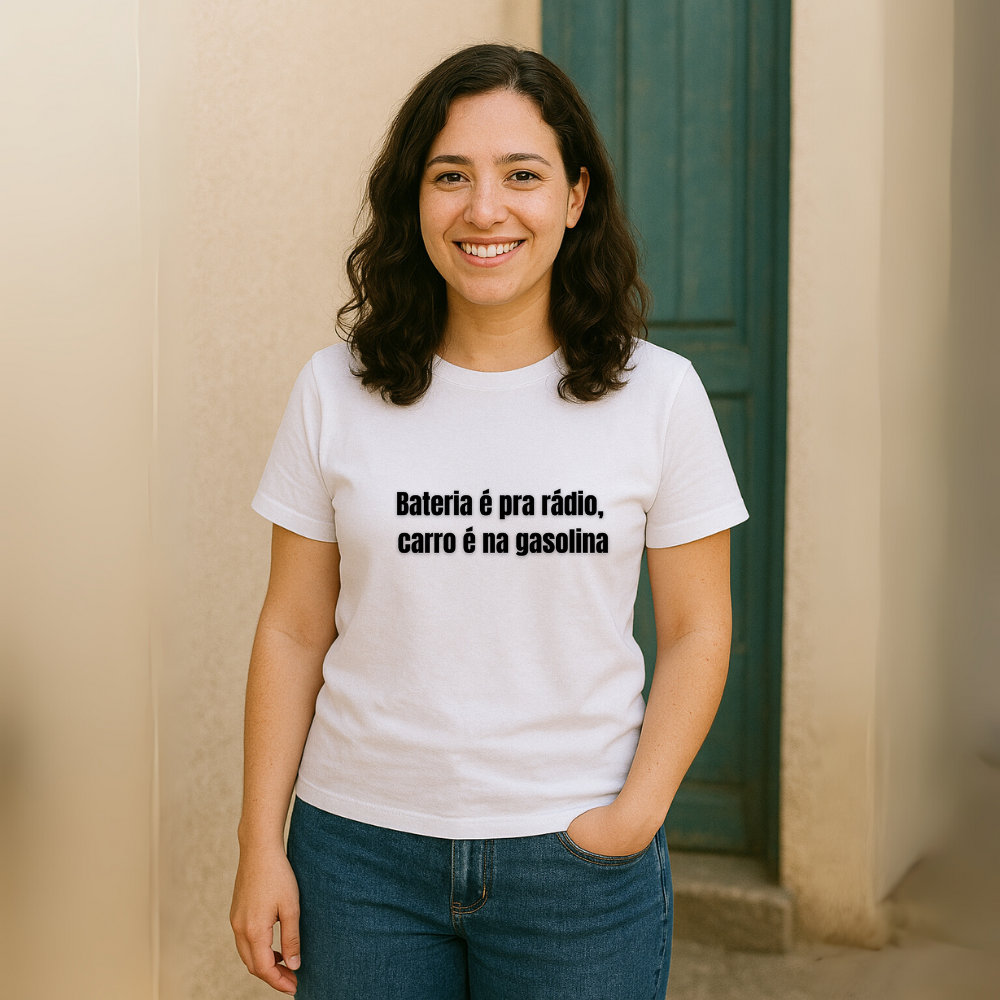 A Camiseta Bateria é pra Rádio foi feita para quem não troca o ronco de um motor a combustão por nada! A frase estampada em destaque — “Bateria é pra rádio, carro é na gasolina” — traz aquele humor afiado e nostálgico, perfeito para apaixonados por carros clássicos e pelo cheiro da gasolina.