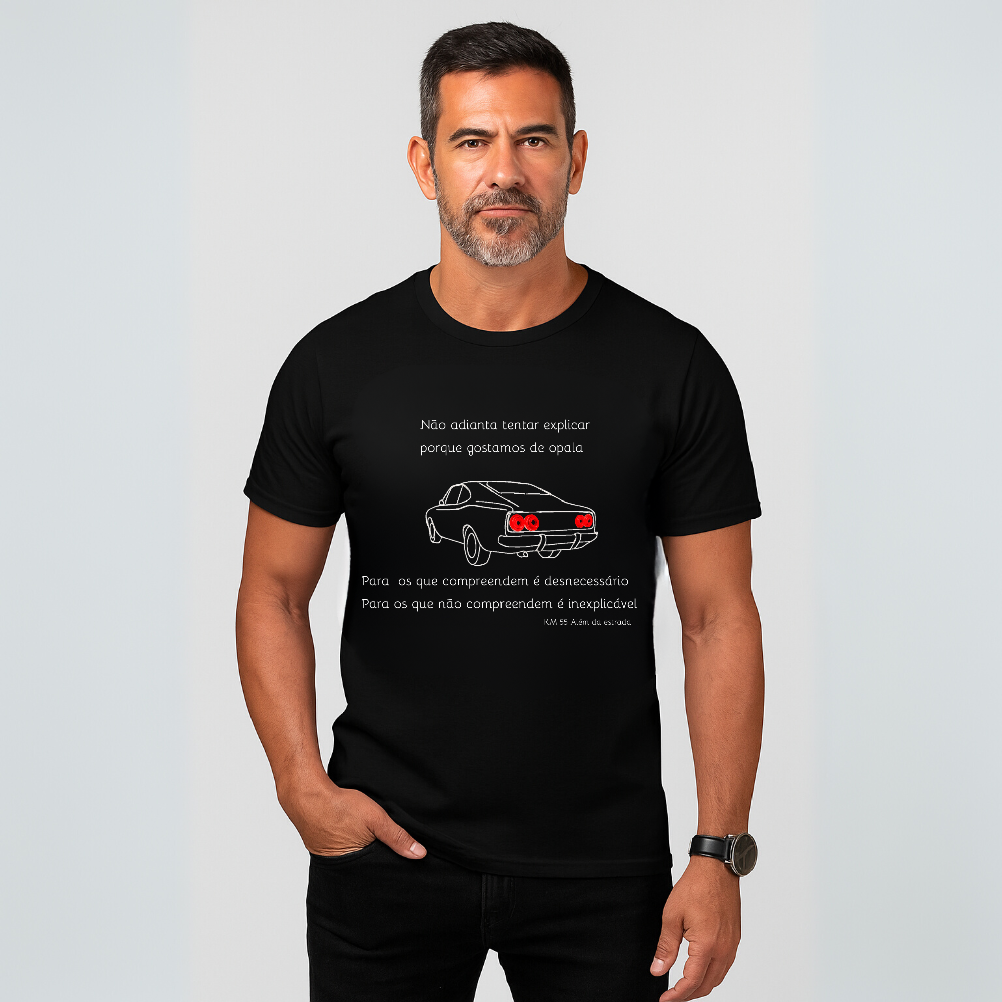 A Camiseta Inexplicável Paixão – Opala é mais que uma peça de roupa, é uma declaração de amor por um dos maiores clássicos das ruas brasileiras. Com a frase “Não adianta tentar explicar porque gostamos de Opala. Para os que compreendem é desnecessário, para os que não compreendem é inexplicável”, acompanhada do traço estilizado do Opala visto de trás, esta estampa traduz a emoção e a conexão única que só os apaixonados por carros clássicos entendem.