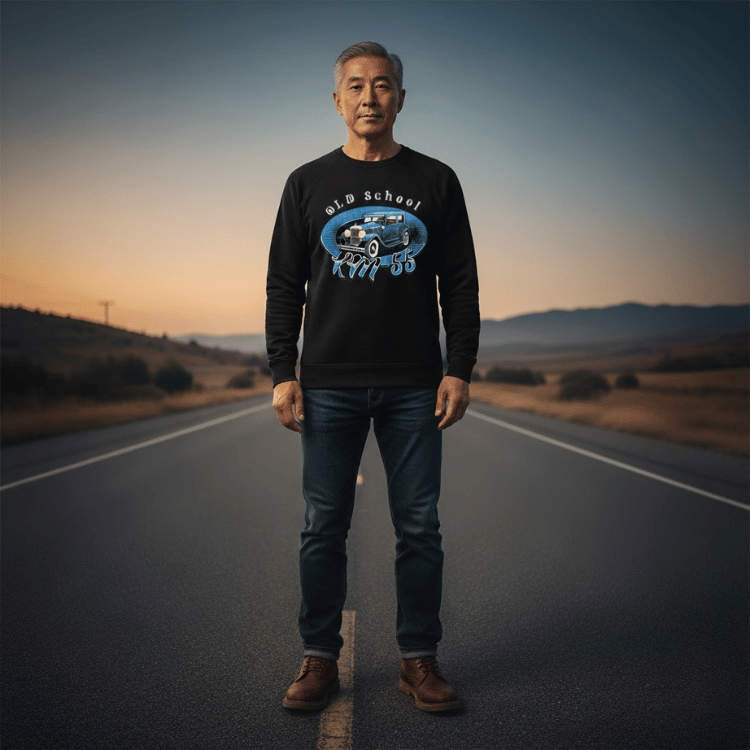 O Moletom Old School – KM 55 é um tributo aos tempos em que dirigir era mais do que locomoção — era liberdade, estilo e atitude.