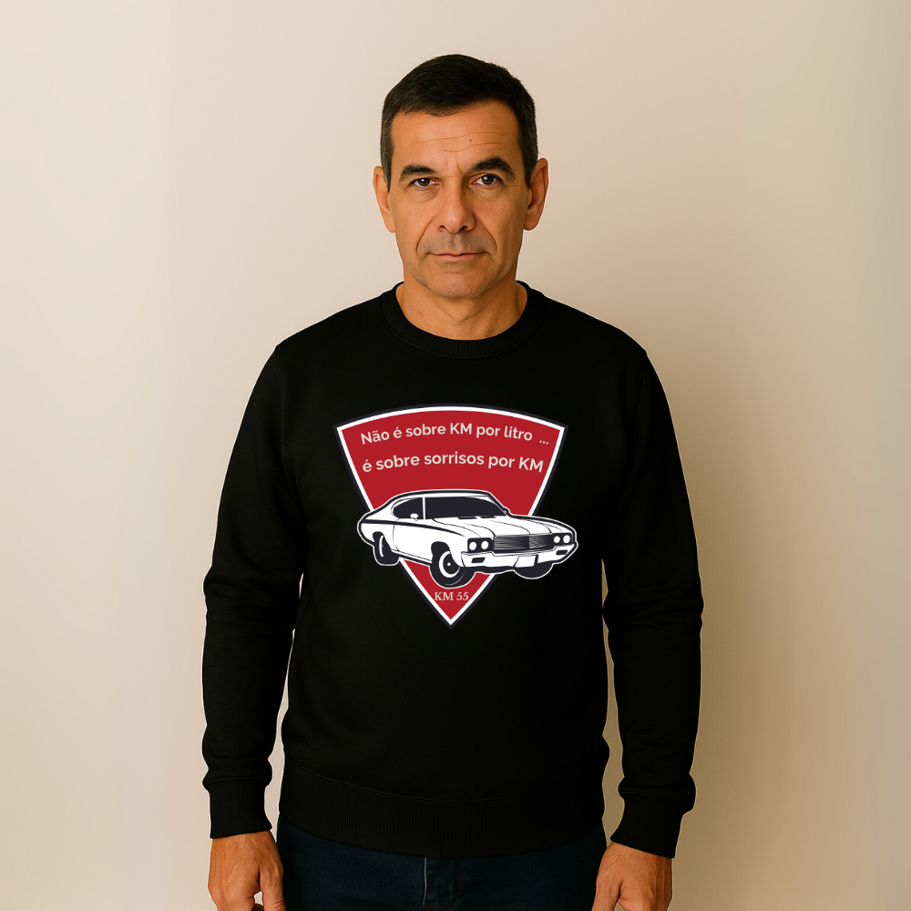 O moletom Sorrisos por KM – KM55 foi feito para quem entende que dirigir não é apenas sobre consumo ou desempenho, mas sobre a experiência e os momentos que a estrada proporciona. A estampa traz um carro clássico em destaque, acompanhado da frase: “Não é sobre KM por litro… é sobre sorrisos por KM”, um lembrete de que cada quilômetro é uma história, uma memória e um sorriso a mais na sua jornada.