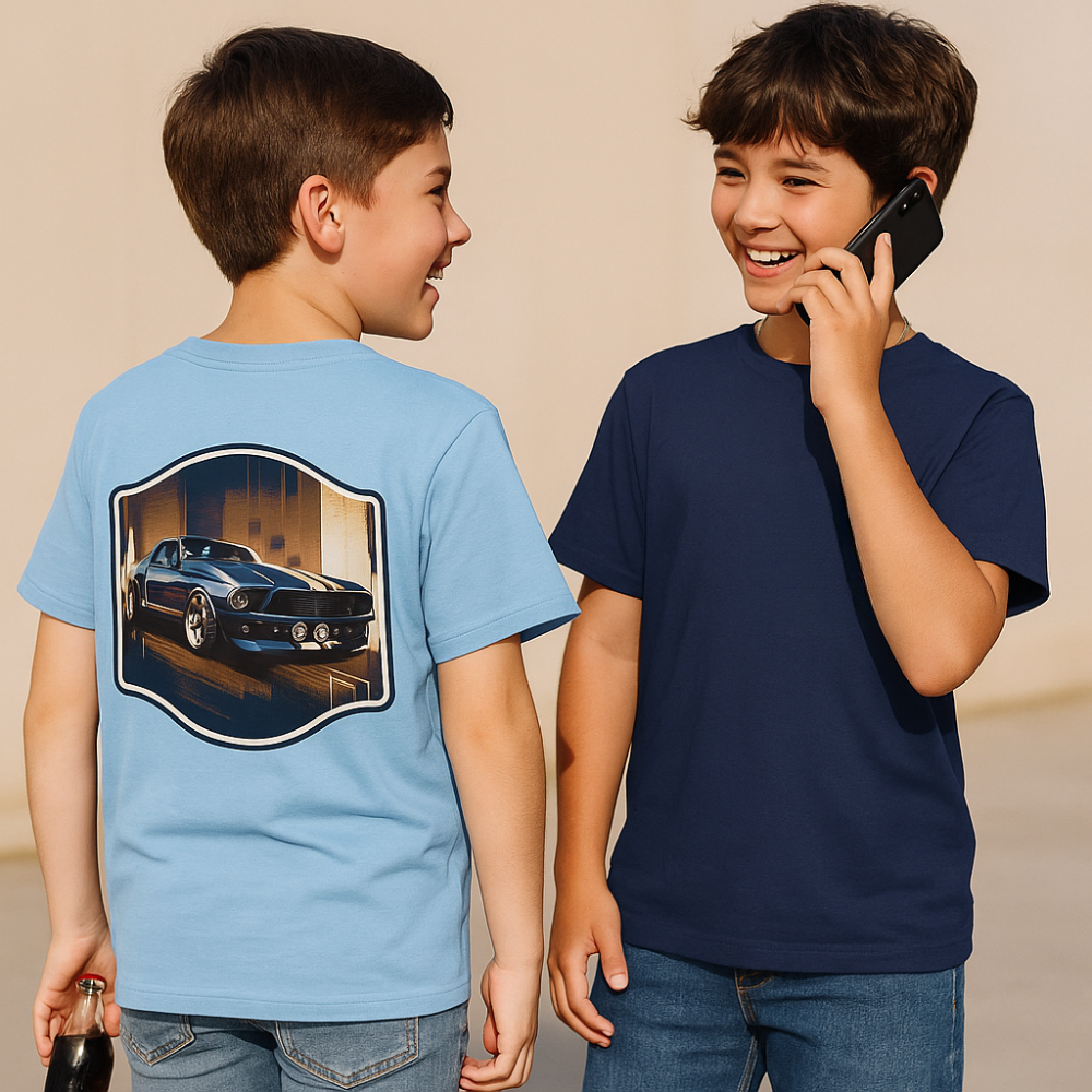 A Camiseta Infantil Mustang Fastback é perfeita para os pequenos apaixonados por velocidade e estilo clássico. Com estampa detalhada do icônico Ford Mustang Fastback, símbolo de potência e elegância, ela transmite a emoção das pistas e o charme dos carros que marcaram época.