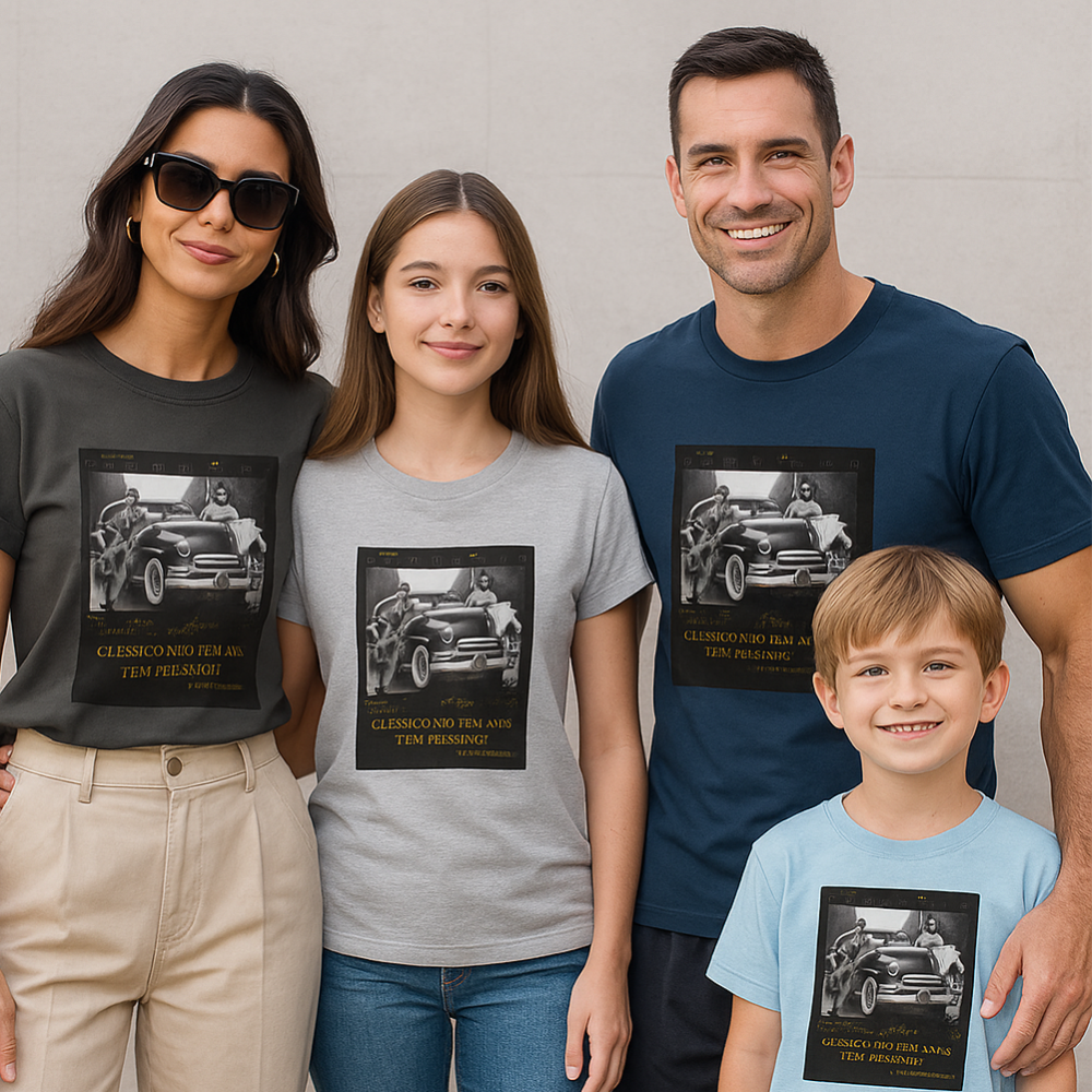 Essa estampa nasce do preto e branco que nunca sai de moda, com uma composição elegante, nostálgica e cheia de atitude. Uma homenagem visual àqueles que fazem virar o pescoço quando passam, e ao sentimento que só quem ama antigomobilismo entende.